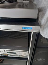 Impianto a colonna composto da: - Mobiletto PIoner con allaccio cuffie e porta cd e cassette - n.2 casse esterne - Amplificatore Sony TA-AX4 - Radio sintetizzatore am-fm sony ST-JX4L - Piastra cassette Technics RS-D400 da sistemare non funzionante - Giradischi con custodia in plastica nuova Sansui SR333 L' impianto e' stato revisionato da poco da tecnico specializzato Si fornisce video in funzione Ritiro sul posto