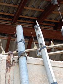 Vendo impianto antenna TV altezza 12 m composto da 2 pali zincati 3 MT diametro 4,5 cm spessore 1.4 mm tre bulloni, 1 palo lo zincato 3 metri diametro 3,5 spessore 1,4 mm tre bulloni 1 palo lo zincato 3 metri diametro 3 spessore 1,4 mm