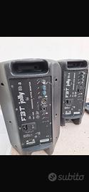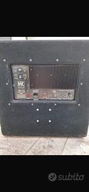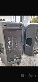 Vendo impianto attivo fbt e sub hk N. 2 fbt jolly 8a Sistema a 2 vie biamplificato Bass-Reflex Woofer Ceramico 8" Custom ad alta efficienza ed escursione Driver a compressione Custom da 1" Risposta in frequenza: 60Hz - 20kHz SPL max: 124dB Tromba 90°H x 60°V a direttività costante Amplificatori LF/HF in classe D di 200/50W RMS Pulsante filtro Hi-Pass per utilizzo con Subwoofer Pannello di controllo: XLR/Jack input e XLR link, Mic/Line switch, Level, HP filter Processore digitale DSP con EQ e protezioni dinamiche per il corretto bilanciamento timbrico e la totale protezione a qualsiasi volume 4 EQ Preset per utilizzo generico, voce o stage monitor, per ascolto a volume moderato, musica disco Alimentatore switching ad alta efficienza Robusto cabinet in polipropilene con maniglie integrate 2 Punti ancoraggio M6 Dimensioni: 255 x H415 x 245mm Peso: 8,2kg N.2 fbt jolly 12 ra Configurazione way 2 Amplificatore interno W rms 150+50 Risposta in frequenza @-6dB 60Hz-20kHz Unità basse frequenze mm 1x320 - bobina è 51 Unità alte frequenze mm 1x25,4 + tromba - bobina è 25,4 Sensibilità (@1W/1m) dB 98 SPL massimo dB 121 Dispersione H x V 90� x 60� Impedenza di ingresso kOhm 22 Frequenza di incrocio kHz active 2 Connettori di ingresso combo / XLR M Cavo di alimentazione Dimensioni nette (LxAxP) mm 410x663x387 Peso netto kg 16 Dimensioni trasporto (LxAxP) mm 495x740x475 Peso trasporto kg 18,5 N.1 sub hk CA 115 N. 1 mixer N. 4 stativi in alluminio di cui 2 da rivedere Impianto usato per piccoli eventi e meeting Vendita in blocco oppure anche separatamente con prezzo da concordare