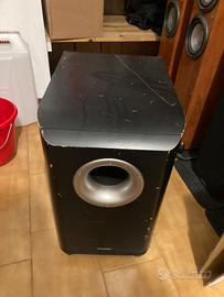 Impianto audio formato da: - finale con ingressi audio e hdmi - sub - 1 cassa centrale - 4 casse a torre - cavi per collegarw