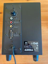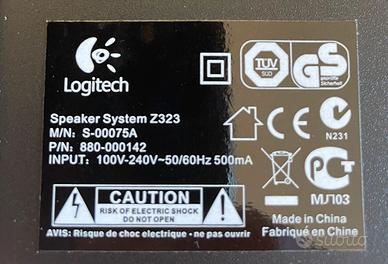 Impianto audio Logitech con subwoofer ad alte prestazioni e facile da usare, il sistema di altoparlanti , offre un suono ricco e bilanciato. Compatibile con qualsiasi dispositivo con un ingresso per cuffie (3,5 mm). perfettamente funzionante, si può usare anche in casa con cellulare come impianto domestico . Logitech Z323. Sistema audio: 2.1, Potenza in uscita (RMS): 30 W, Utilizzo raccomandato: Universale. Potenza Satellitare RMS: 12 W, Frequenze di crossover altoparlante satellitare: 1000 Hz, Impedenza altoparlante satellitare: 4 w Tipo di subwoofer: Attivo, Subwoofer RMS: 16 W, Impedenza subwoofer: 6Dimensioni altoparlante satellite (LxPxH): 87 x 135 x 203 mm, Dimensioni subwoofer (LxPxH): 150 x 182 x 221 mmm