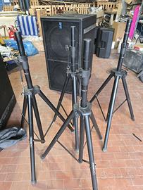 4 cavalletti proel (la versione col cuscinetto ad aria per ammortizzare la discesa con le casse montate; 1 di questi non ha più il fermo, 2 sono praticamente nuovi e completi di dustbag per il trasporto comodissima)