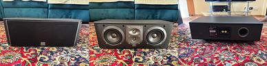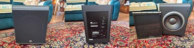 Vendo impianto audio per ascolto musica (Hi-Fi) e audio dei film (Home Theater) con resa sonora fedelissima, composto da sintoamplificatore ONKYO TX-NR609 e diffusori JBL, perfettamente funzionante e tenuto in condizioni perfette, completo di cavi, accessori, imballaggi originali e antenna AUDISSEY 2EQ per la calibrazione. Composizione: ONKYO TX-NR609, sintoamplificatore potente e versatile, ideale sia per cinema che per musica, potenza 160W per canale (6Ω), decodifica audio Dolby, TrueHD e DTS, 6 ingressi HDMI e 1 uscita HDMI 3D e ARC, upscaling video 4K, calibrazione automatica Audyssey 2EQ, porta di rete Ethernet per DLNA e radio internet, USB per connessione diretta digitale. JBL ES100, 2 diffusori da pavimento a 4 vie con doppio woofer da 250 mm, sistema bass-reflex, midrange dedicato, tweeter a cupola in titanio + supertweeter, potenza 400W. JBL ES25C, 1 diffusore centrale, perfetto per dialoghi chiari e definiti nei film, doppio midwoofer, tweeter in titanio. JBL ES150P, 1 subwoofer attivo potente, woofer da 250 mm, amplificatore interno da 300W. Suono potente e immersivo, ideale per Home Theater, componenti di alta qualità, perfetto sia per ascolto audio di film che per la musica. Ottima occasione per chi desidera elevata qualità sonora a un prezzo convenientissimo.