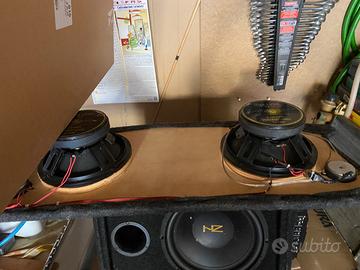 Vendo impianto audio come nuovo mai sfruttato al massimo woofer 25 cm 400 watt cada uno serie professionale sub diametro 30 750 watt vendo tutto in blocco prezzo non trattabile