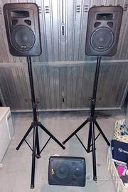 impianto audio completo di tutto per feste.. convegni.. karaoke.. e quant'altro.. tutto completo di casse.. spia.. mixer.. microfoni.. stativi.. e tutti i cavi necessari. vendo in blocco. 450 euro. trattabile. poco..