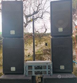 vendo impianto audio sr technology in perfette condizioni composto da 2 subwoofer da 18 pollici da 800 watt l'uno rms e 4 satelliti da 12 pollici con driver da 1 pollice da 600 watt l'uno 2 hanno le trombe a lunga gittata per sonorizzare lunghe distanze e 2 hanno le trombe a gittata media per coprire le zone più vicine. 2 finali sr technology Power four 1 crossover controller sr technology per ottimizzare la risposta in frequenza del sistema le casse sono predisposte di fabbrica per essere appese all'americana volendo o possono essere utili ste sugli stativi standard impianto made in Italy tutto multistrato di betulla e componenti italiani,suono spettacolare,ottimo per grandi spazi all'aperto e al chiuso per orchestre dj set o gruppi musicali ma anche per installazioni in discoteche locali e pub qualsiasi prova sul posto o possibilità di spedizione su bancale con 70 euro per info contattatemi pure senza problemi ma per favore no perditempo tag rcf fbt montarbo db technologies line Array mad jbl mackie Pioneer dj cdj carri allegorici behringer Proel