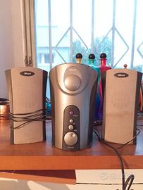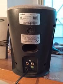 impianto stereo Trust con: -2 altoparlanti via cavo -1 cassa centrale con comandi -cavi necessari