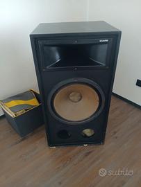 Vendo impianto audio composto da coppia di casse passive Ciare costruite su progetto Ciare 16 ohm 200 Watt , 2 vie con cono da 18" e tromba (driver recentemente sostituiti con driver compatibile 18 Sound). Amplificatore Aeron A4, perfetto, non ha alcun problema, nessun segno del tempo. Caratteristiche: potenza d'uscita RMS 2 x 80 W / 8 ohm - 2 x 120 W / 4 ohm. Ingressi; CD, Sintonizzatore, Phono MM, Aux1, Aux2, , Tape1(solo ingresso), Tape2 controlli di tono (bas, mid e treeble) con possibilità di esclusione e balance. Uscite; pre-out1, pre-out2, subwoofer due coppie di casse con morsetti a vite. Risposta in frequenza 20 Hz-20 kHz +/- 0,5 dB Rapporto segnale/rumore >95 dB (ponderato A) Distorsione armonica <0,1% 20 Hz-20 kHz. Impianto utilizzato solo a casa sia per ascolto, sia per amplificare strumenti (basso, pianoforte elettrico, microfoni). Si tratta di un impianto piuttosto potente e estremamente qualitativo nella fedeltà audio. Visibile solo a Montegalda Vicenza, prezzo non trattabile