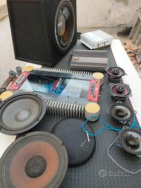 Come da foto . Tutti funzionanti . Amplificatori di alti livello USA .Più di 1000 Watts totali. Altoparlanti usati ma funzionanti . Phonocar JBL. Valuti scambi con scheda video recente .