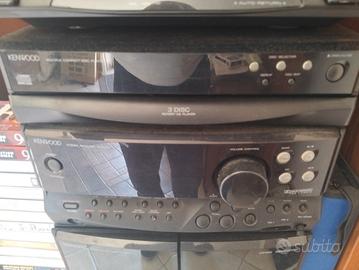 impianto Hi-fi compatto Kenwood con piatto vinile 40+40 Watts rms funzionante mancano le casse acustiche