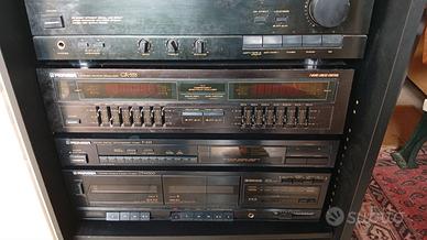 IMPIANTO HI-FI PIONEER COMPLETO PIATTO AMPLIFICATORE EQUALIZZATORE MANGIACASSETTE RADIO E LETTORE AKAI PIU DUE CASSE TECHNICS 100 WATT RITIRO IN LOCO MESSAGGI SUBITO O WHATSAPP