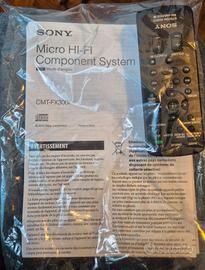 Vendo, per inutilizzo un impianto micro Hi Fi Sony CMT-FX300i, FUNZIONANTE, spacchettato e mai usato. Viene venduto completo di scatola (priva del polistirolo), due casse, cavo antenna, istruzioni e telecomando. L'impianto MICRO HiFi dispone di sintonizzatore radio AM/FM, lettore CD, ingresso USB e la possibilità di connettere direttamente diversi vecchi dispositivi Apple Ipod mediante attacco diretto. Consegno a mano a Trieste.
