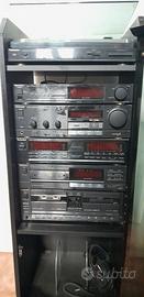 Impianto stereo hi-fi con giradischi e lettore nastro-cassette. Completo di cavi.