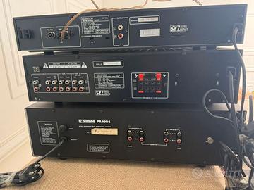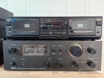 Impianto Hi-Fi Vintage Completo Kenwood / Akai / Teac + Giradischi – Perfettamente funzionante Il sistema è composto da diversi componenti di qualità, tutti in buone condizioni estetiche e perfettamente funzionanti: Componenti inclusi: Amplificatore Akai con VU meter analogici, suono caldo e potente Equalizzatore grafico (multi-banda) per personalizzare al meglio l’ascolto Sintonizzatore / ricevitore Kenwood Lettore cassette doppia piastra Teac 2 giradischi: Giradischi automatico (a sinistra) Giradischi Akai (a destra), robusto e di alta qualità Tutti i componenti sono stati testati e funzionano correttamente. Ideale per ascolto di vinili, cassette e radio con qualità sonora autentica vintage. ANTONIO: 3332227324 keyword: impianto hi fi vintage, stereo vintage completo, impianto stereo anni 80, hi fi analogico, audio vintage, giradischi vintage, giradischi akai, turntable vintage, lettore cassette vintage, doppia piastra cassette, amplificatore vintage, equalizzatore grafico, sintonizzatore kenwood, akai hi fi, kenwood stereo, teac cassette, impianto per vinili, audio analogico, collezione vintage hi fi, impianto completo vintage