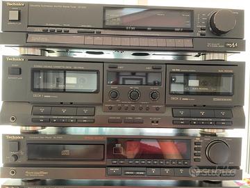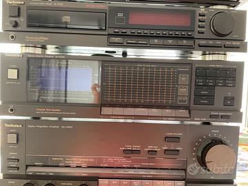 Vendo impianto Technics con casse JBL appena revisionato e perfettamente funzionante. L'impianto è composto da: Digital Integrated Amplifier: SU-V90D Stereo Graphic Equalizer: SH-8056 Compact Disc Player: SL-P333 Stereo Double Cassette Deck: RS-TR515 Synthesizer AM/FM Stereo Tuner: ST-G70 Casse JBL: LX55 Non vendo separatamente.