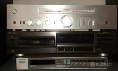bellissimo impianto in ottimo stato e tutto funzionante,composto da amplificatore Sony TA-343 DI 30 W.a canale,lettore cd Technics SL-PG10A,sintonizzatore radio Sony ST-V5L,Subwoofer JBL e coppia di casse Techinics di 70w.a tre vie.Vendo per inutilizzo.No perditempo.