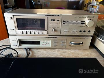 Impianto completo (mancano solo i diffusori) HiFi vintage anni '80 composto da: Amplificatore Marantz PM 510 DC (220 €) Lettore CD Sony CDP-450 con telecomando (50 €) Giradischi Marantz TT2200 (120 €) Sintonizzatore Tuner Marantz SF 450 + Piastra Deck SD 1030 da revisionare (40 €) Vendo in blocco a 300 € Ritiro a mano a Palermo zona Viale Lazio