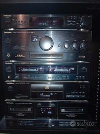 RITIRO A MANO!Vendo impianto hifi Technics funzionante completo come in foto.Unico proprietario! giradischi con puntina originale SL J110R sintonizzatore radio. ST X302L amplificatore. SU X320 lettore CD. SL PJ28A lettore doppio musicassette autoreverse equalizzatore doppio display SH E65 DSC nr.2 speaker 3 vie. SB CS 65 Telecomando Mobile rack con rotelle in ottimo stato cavi e manuali unico difetto il coperchio del giradischi ha le cerniere rotte facilmente reperibili online