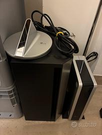 Impianto home theatre LG 5.1. Composto da lettore DVD, 3 casse frontali, 2 casse posteriori con relativo trasmettitore e ricevitore wireless, subwoofer e telecomando incluso. Ottime condizioni. No perditempo.