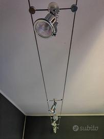 Impianto luci / faretti 12 volt. 5 faretti su cavi lunghi 4,20 metri circa.