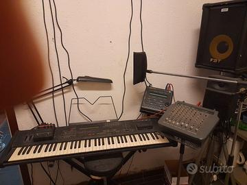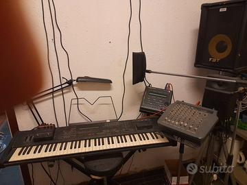 vendo a 700€ impianto musicale completo di tastiera ms 100,solton mixer ftb evoluzione 200e,2 casse con aste ftb 150 w, Harmony per voce, genius con basi professionali, cavi supporti e aste
