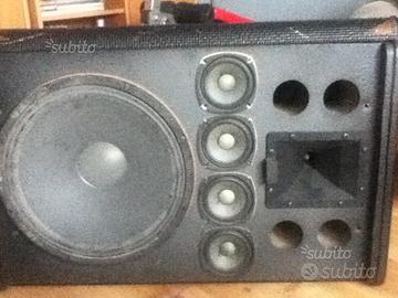 impianto audio professionale dynacord per discoteca o live composto da 4 satelliti Dynacord cx 14 pro due sub Dynacord serie forum line F18 PWH più un finale per i satelliti 01 inkel ma 420 e uno per i sub Inter M500