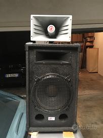Vendo impianto acquistato per amplificazione palazzetto dello sport. Amplificatore, casse con trombe aggiuntive, piantane, cavi con prolunghe, radiomicrofono. Impianto professionale. Prezzo condiviso dopo prova e visione.