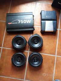 Vendo per inutilizzo impianto stereo auto in ottime condizioni, 4 casse a due vie CIARE paragonabili al nuovo, 2 amplificatori CARPOWER 750 W, Pioneer 300 W, SUB Woofer 600 W doppia bobina IL tutto tenuto benissimo.