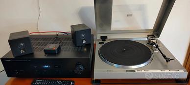 Giradischi HITACHI HT-40S trazione diretta braccio con ritorno automatico testina puntina Goldring pitch control con luce strobo antiskating. Amplificatore YAMAHA A-S201 100Watt. Ingressi Phono, Tuner, CD, Linea 1/2, Tape. Doppio ingresso casse, telecomando. Tuner TECHNICS ST-7300 Analogico con doppio Vmeter. Lettore CD USB Auna CD 1000DG con telecomando. Casse 100Watt. 8 ohm. Ricevitore Bluetooth 5.2 con NFC e slot per scheda TF. Base per giradischi in vetro molato. Bilancino pesa puntine, Kit pulizia vinili/puntina e tutta la cavetteria collegamenti. Tutto Perfettamente Funzionante. COME NUOVO. QUALSIASI VISIONE E PROVA. Vendo euro 400. Compreso una 20ina di vinili LP Ottimi Come Nuovi. Ritiro a mano Quarrata. Non Spedisco.