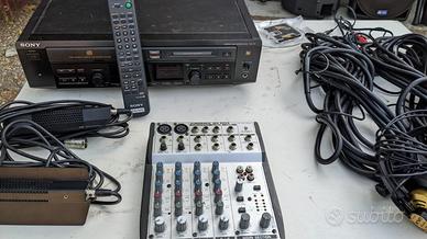 Impianto completo come nuovo di registratore minidisk casse con supporto, microfoni voce, mixer cavetti ecc... come da immagini!