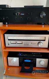 Impianto Stereo Completo COME NUOVO. QUALSIASI VISIONE E PROVA. Giradischi Trazione Diretta HITACHI HT-40S con base per giradischi in vetro molato. Amplificatore YAMAHA A-S201 100Watt. in garanzia. Tuner TECHNICS ST-7300 con doppio Vmeter. Lettore CD USB AUNA CD 1000DG. Ricevitore Bluetooth 5.2 in garanzia. Casse 100Watt. 8 Ohm. in garanzia. Cuffie Bluetooth Philips in garanzia. Telecomandi, manuali d'uso e tutta la cavetteria completa per i collegamenti. Vendo euro 400. Compreso diversi Vinili LP Come Nuovi. Ritiro a mano Quarrata. Non spedisco.