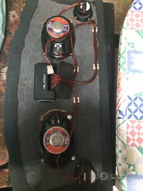 Vendo impianto stereo completo. Vari componenti: crossover elettronico, 2 medio bassi ciare da 20 cm mod. CME200 da 520 w, 2 medi a cupola audiotop da 8 cm,2 tweeter da 25 mm tec, amplificatori relativi 2 v12 alpine 2 e 4 canali e 1 rockford fosgate 4 canali holdschool, 1 condensatore, 2 tweeter ciare Ct 266 da 250 W e 2 altoparlanti jensen Jxl 400 da 180 W. Vendo anche singolarmente