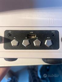 Vendo impianto stereo con due casse esterne. Dispone di ingresso AUX e USB per collegare dispositivi esterni, oltre ai controlli di volume e sintonizzazione. Inoltre è dotato di lun lettore CD. Il design compatto lo rende ideale per casa o ufficio. In buone condizioni e perfettamente funzionante.
