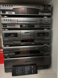 Completo dí doppio mangiacassette, due pora CD, radio, equalizzatore, coppia di casse S-J300 e telecomando