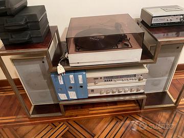 •Impianto per la musica comprende: 2 casse dual •Amplificatore Dual CV40 perfettamente funzionante • Radio Dual • mangiscassette GRUNDIG CN 222 funzionante •Giradischi DUAL perfettamente funzioannte Tutto funzionante Compreso nemmroezzo mobile in Radica su misura