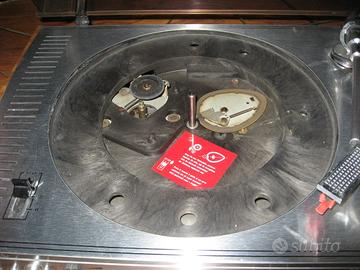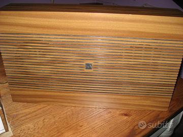 Impianto stereo integrato con chassis ammortizzato anno 1975 di produzione tedesca, funzionante ed in buono stato comprensivo di giradischi semiautomatico, coppia casse da 15-25W, dotato di filtri per taglio frequenze alte e/o basse con possibilità di collegamento a unità esterne come giradischi, tapedeck, sintonizzatore,lettore cd, microfono e cuffie. Movimento del piatto con puleggia a due velocità 33/45 giri. Discesa assistita soft della testina sul vinile,ritorno automatico in posizione di riposo al termine del disco e comando per l'interruzione dell'ascolto in qualsiasi punto e ritorno in posizione di riposo. In dotazione spazzolini da applicare per la pulizia dei solchi in contemporanea all'ascolto.
