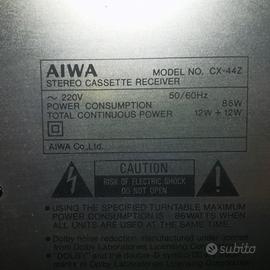Vendo impianto Ho Fi Aiwa CX 44Z, lettore di cassette da testare, io lo usavo solo come amplificatore per aux, con ingressi separati e volumi singoli di aux/phono.