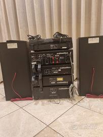 Impianto Stereo HI-FI Kenwood Perla Nera in ottimo stato mai usato. Comprende giradischi, cd, registratore a cassette, radio, due amplificatori audio, telecomando. Gli amplificatori e il registratore a cassette sono comprendenti di scatola e imballaggio originali. Tutto funzionante, ottimo stato, mai usato.