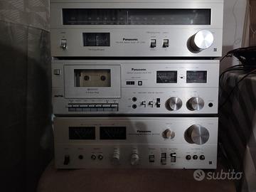 Impianto stereo hi fi Panasonic, cercherò di essere molto chiaro, composto da n.3 pezzi, la radio funziona bene,la piastra cassette pure, unico problema è l' amplificatore, funziona solo un canale, quindi venduto per parti da ricambi, se avete bisogno di ulteriori informazioni, non esitate, vendita anche singolarmente 40 euro pezzo. Cordiali saluti