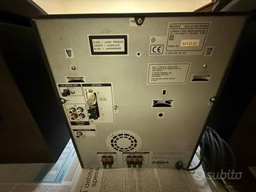 Impianto stereo Hi-Fi Sony completo, con meccanismo piatto cd girevole e sportellino sx cassette da ripristinare. Fornisco anche staffe per appendere le casse principali al muro.