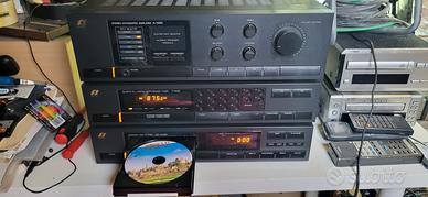 Vendo impianto stereo HiFi della SANSUI formato da 3 pezzi: radio modello T-1000 amplificatore modello A-1000 e lettore CD modello CD-V 1000 quest'ultimo senza sportellino come si vede nelle foto ma tutto perfettamente funzionante completo di casse JBL control 1. Non vendo separatamente ma solo in blocco.