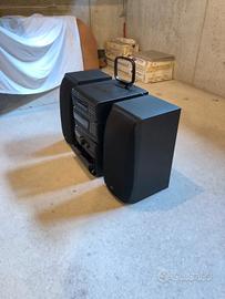 vendo impianto stereo jvc dell'anno 1997 dotato di lettore CD a 3 comparti e 2 musicassette e 2 casse. L'unico difetto è che il comparto CD non funziona e quindi la musica si ascolta o con le musicassette o con la musica normale dei canali radio. Le 2 casse offrono un'esperienza musicale e sonora fantastica.