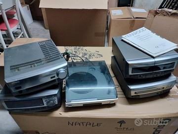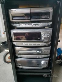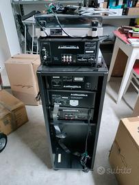 Impianto Kenwood: P110 + DPH5 + AH6 + CH6 + XH5 + LSH6 Mobiletto Kenwood in legno e vetro Da segnalare (come da foto) Double Cassette Deck (XH5) presenta uno sportello difettoso.
