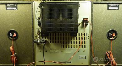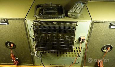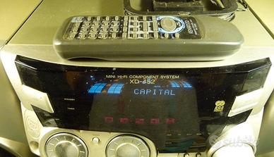 Impianto stereo Kenwood mod. XD-452 composto da unità centrale (CD con 3 piatti programmabili, radio con RDS, doppia cassetta), casse a 2 vie, telecomando, 2 antenne (AM,FM), cavi di collegamento. Radio e CD funzionanti, sezione cassette da revisionare (cinghie da sostituire). Potenza 70+70 watt e complesso equalizzatore con diverse modalità audio. Dato l'ingombro ed il peso (circa 20 kg) la spedizione risulta difficoltosa quindi solo consegna diretta a Savona piano strada previa prova.