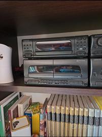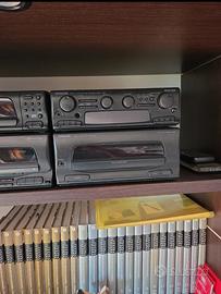 impianto stereo Kenwood radio, amplificatore, doppia cassetta auto reverse, cd con 6 cd