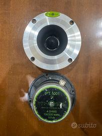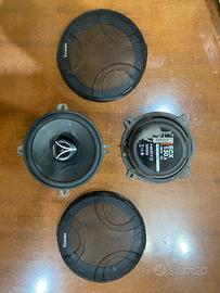 due casse hertz ECX 130,5 da 150 W, 4 Ohms da 13 cm provviste di compri casse nuovi; due casse ipnosis IPB 2200 da 140/260 W 98 db e 4 Ohms e due twitter anch’essi ipnosis IPT 1001 da 100/200 W 101 db e da 4 Ohms.