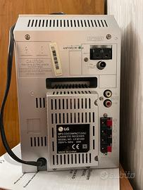 Impianto stereo LG completo di casse con lettore cd mp3 , radio rds, misicassette, antenne, telecomando ed istruzioni. Ritirabile a palermo previo appuntamento. No spedizione n scambi