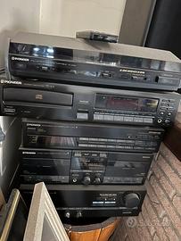Impianto stereo Pioneer, composto da amplificatore a X440, double cassette desk CTX440W, sintonizzatore FM/AM FX440, CD player PD 203, giradischi PLX340 e casse Pioneer come in foto