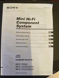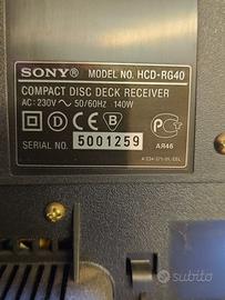 Impianto stereo Sony MHC-RG40 Completo di telecomando, istruzioni, casse ed antenna FM esterna. Tutto funzionante ad eccezione del lettore CD.