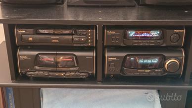 Impianto stereo surraund Technics completo, con caricatore CD (5), lettore cassette e radio. Completo di casse acustiche.